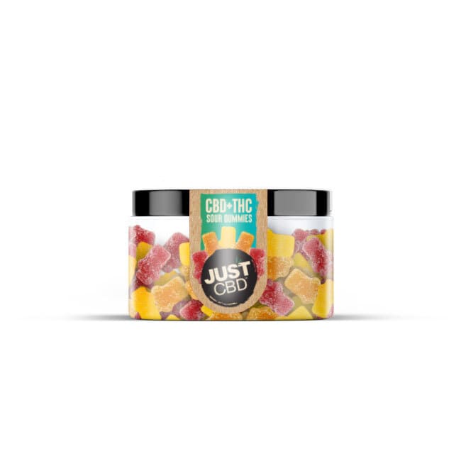 INGREDIENTS: Sugar, Glucose-Fructose Syrup (wheat & corn), Wheat flour, modified starch (wheat, corn and potato), oils (Palm, Coconut), Citric Acid, Lactic acid, Malic Acid, Sodium malate, artificial colorings (Turmeric-natural, FD&C Blue 1-artificial, Paprika oleoresin-natural), coloring foodstuff (black carrot juice), flavorings (apple, lemon, orange, blueberry, strawberry), glazing agent (carnauba wax), Hemp Derived Cannabidiol (CBD) & Full Spectrum THC Proprietary Blend.